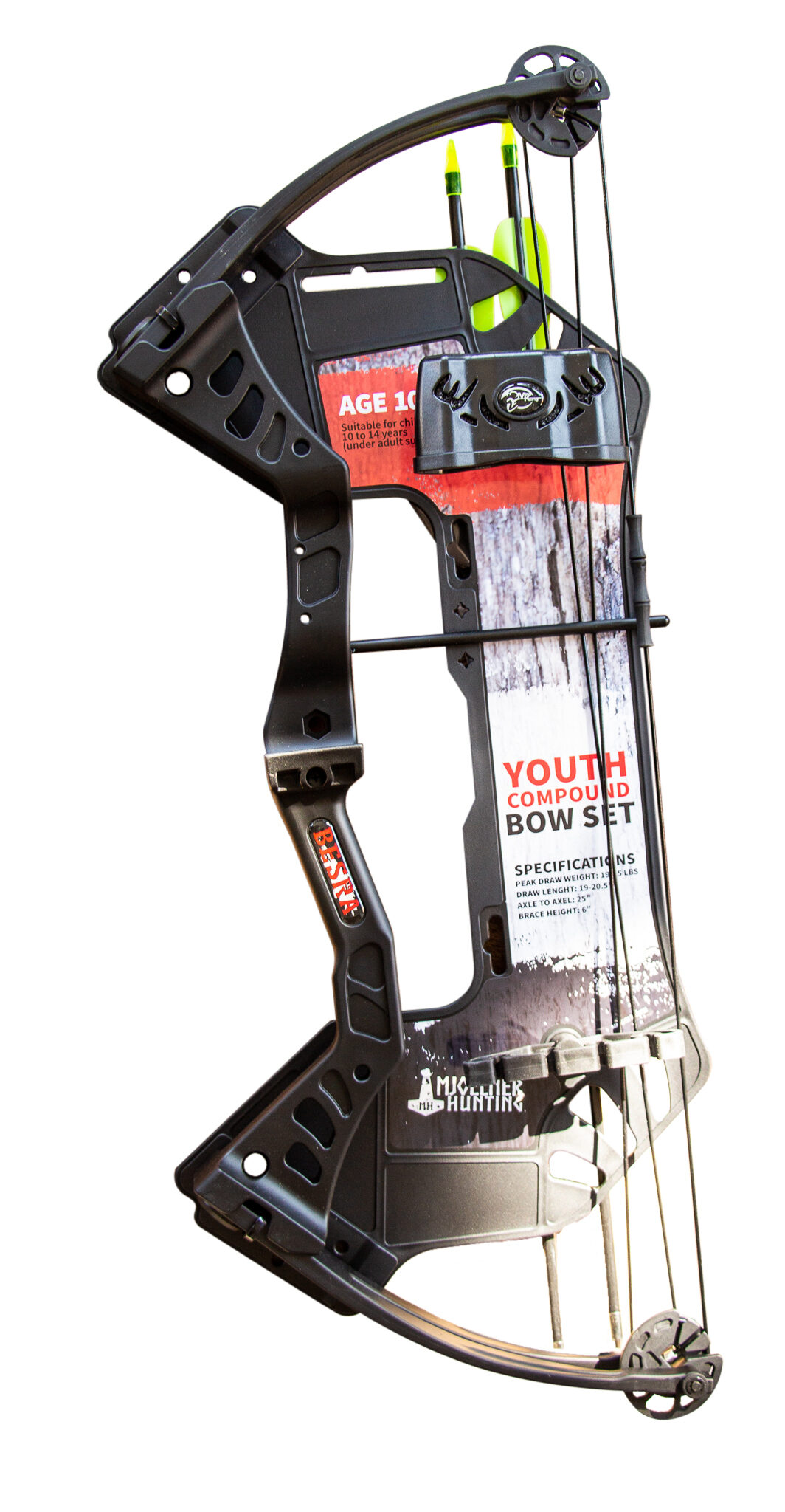 Youth Compound Bow sæt Troels. Klar til brug – buesæt for de yngre teenagere i luksus udgaven. Udstyret med kogger til pile, strengmonteret fingertab, en armguard og 2 x 26 “glasfiberpile. Buen har en trækvægt på 19-25 LBS. Og en træklængde på 19-20,5”.