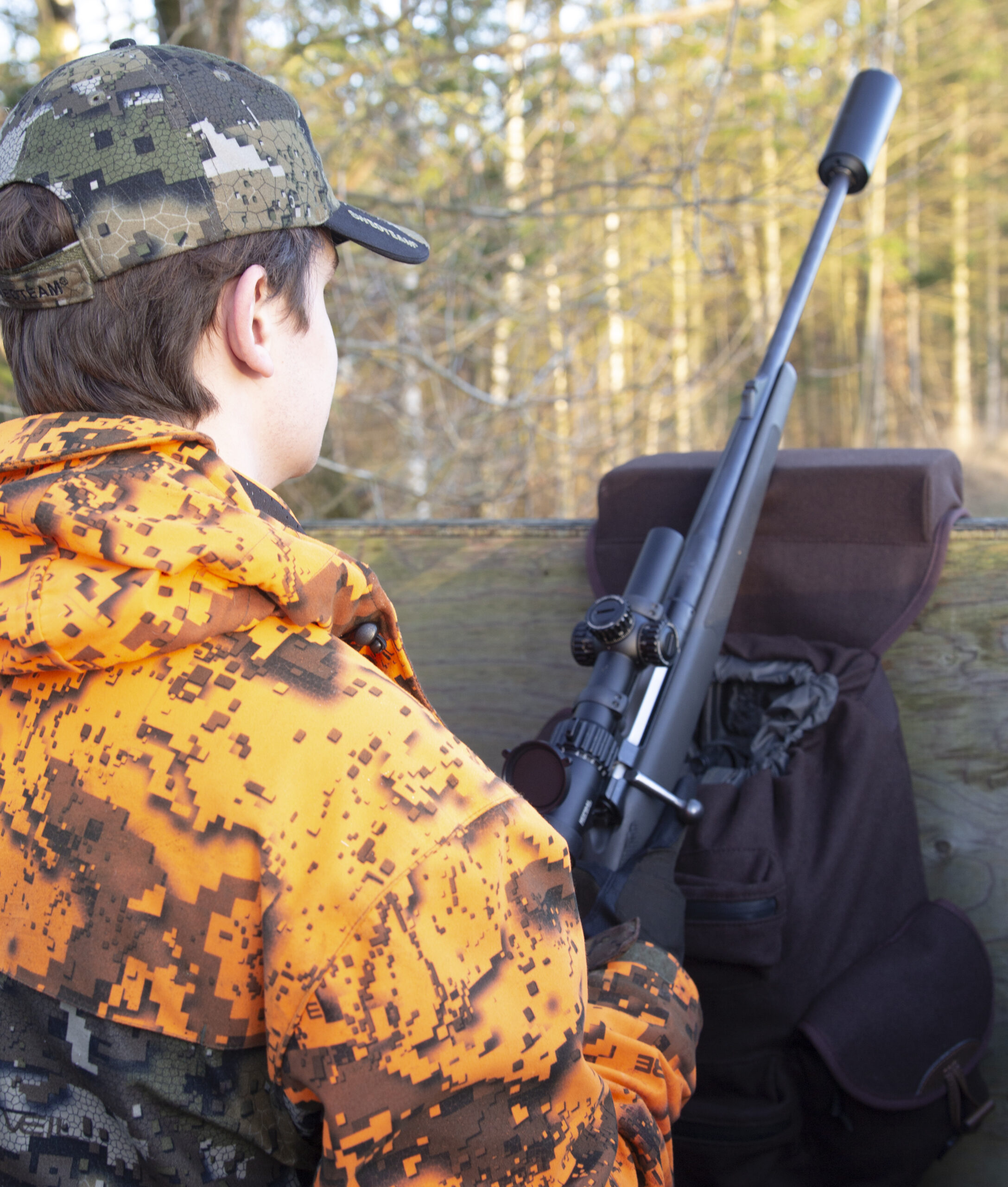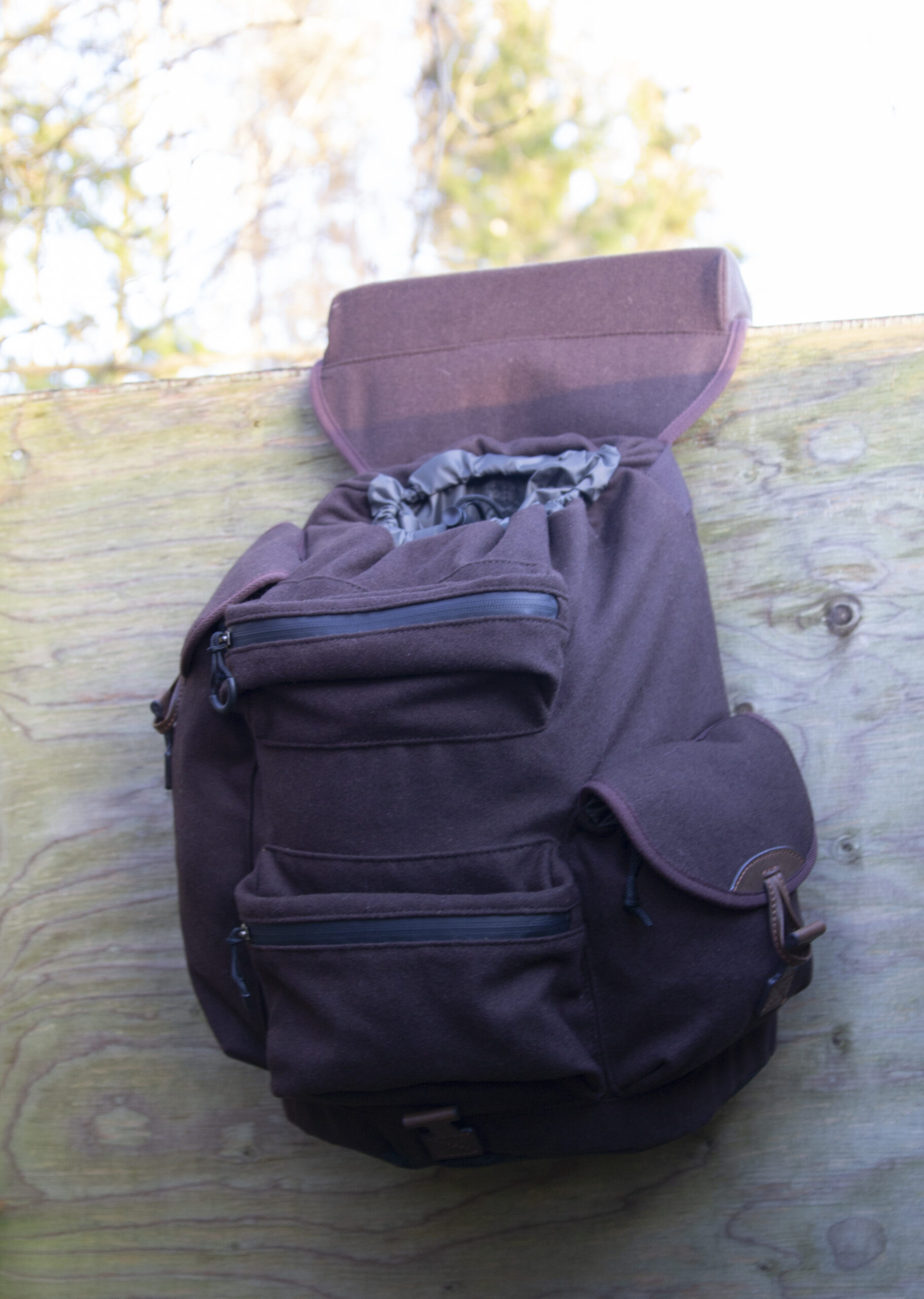 Stilfuld lydløs rygsæk specielt udviklet til brug fra High seats /Kanzel. Rygsækken er lavet af lækker loden. Den ene halvdel af rygsækken hænges ud over kanten, og indersiden af toppen bruges som riffelpude. Et stort hovedrum med snelukke. To frontlommer til udstyr. En stor sidelomme og en mellemstor sidelomme. Der er også en lomme på lågsiden. Bløde skulderstropper og bærerem.