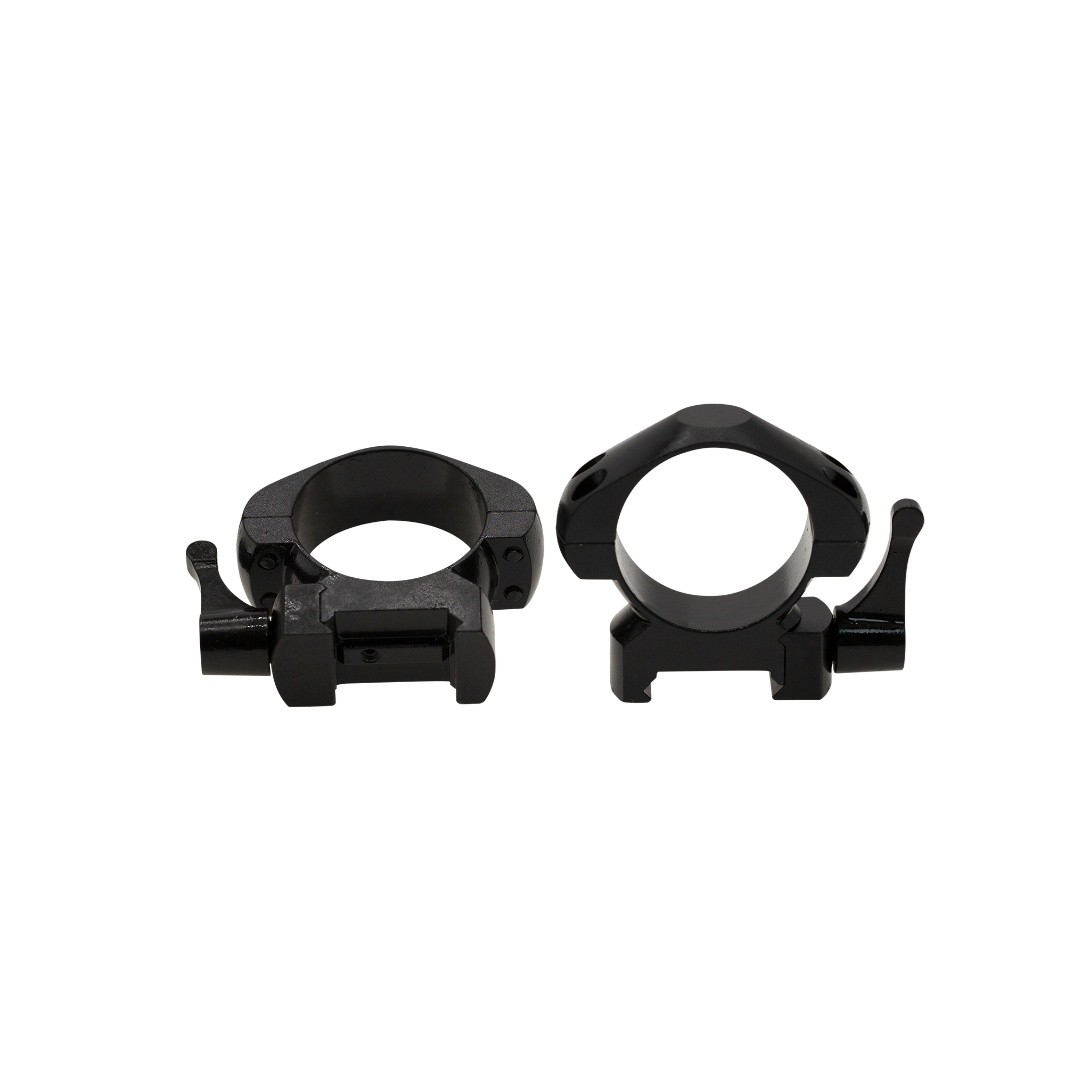 Montageringe i stål til riffelkikkert med 30 mm rør. Passer til Weaver og Picatinny rail.