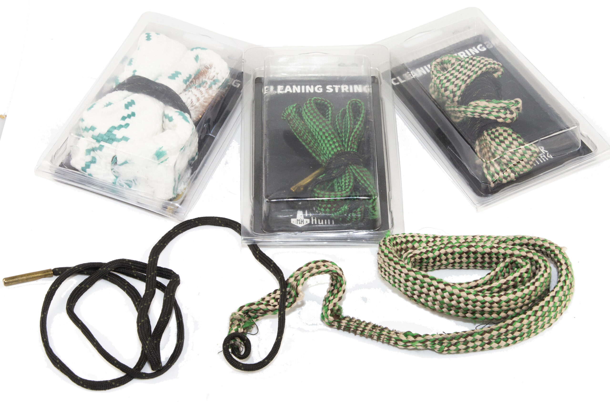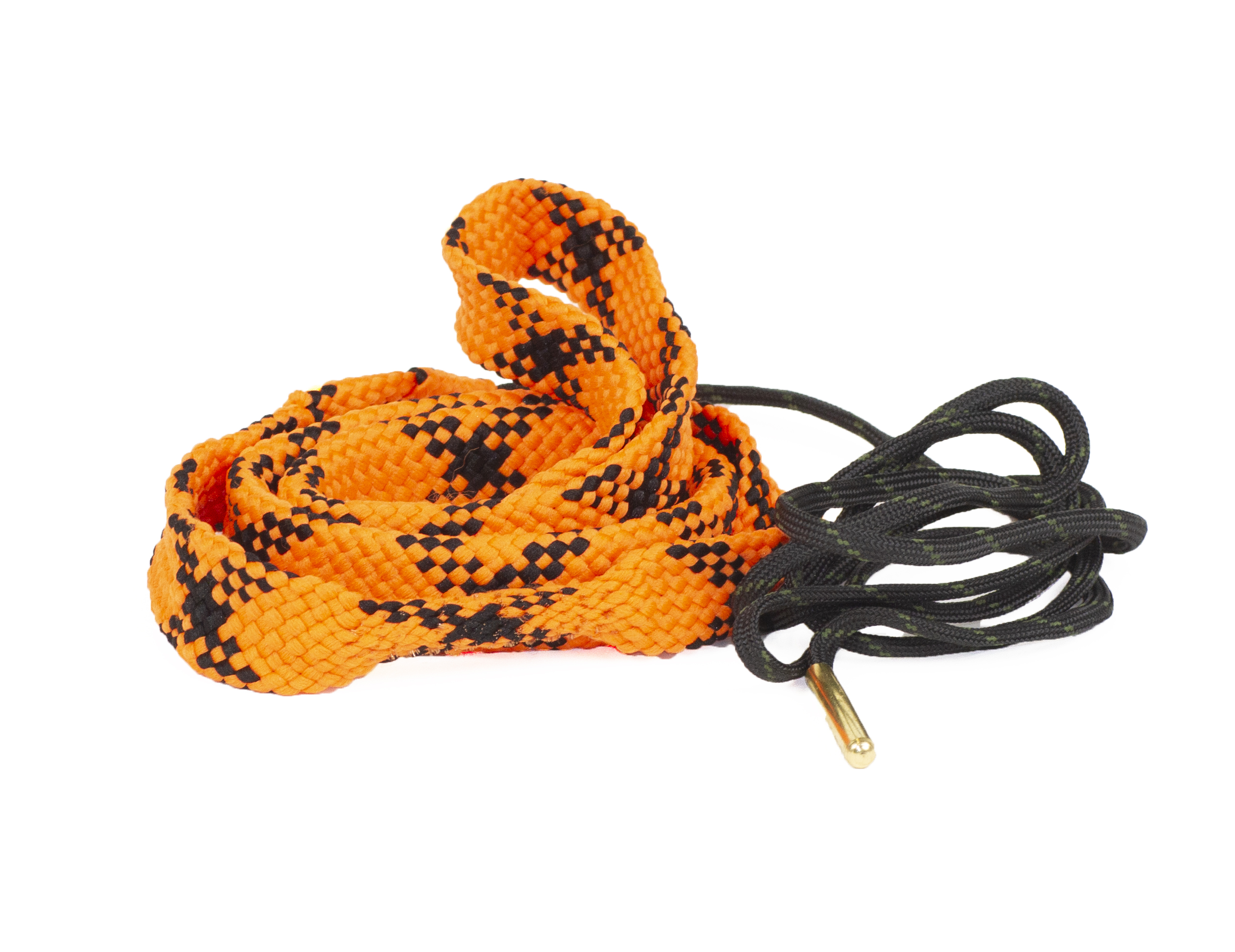 Rensesnor for riffel. Nem og praktisk løsning til rengøring pibe. Messinglod til nem indføring. Messing børste i starten af rensesnoren efterfulgt af flettet nylon til afrensning af pibe.