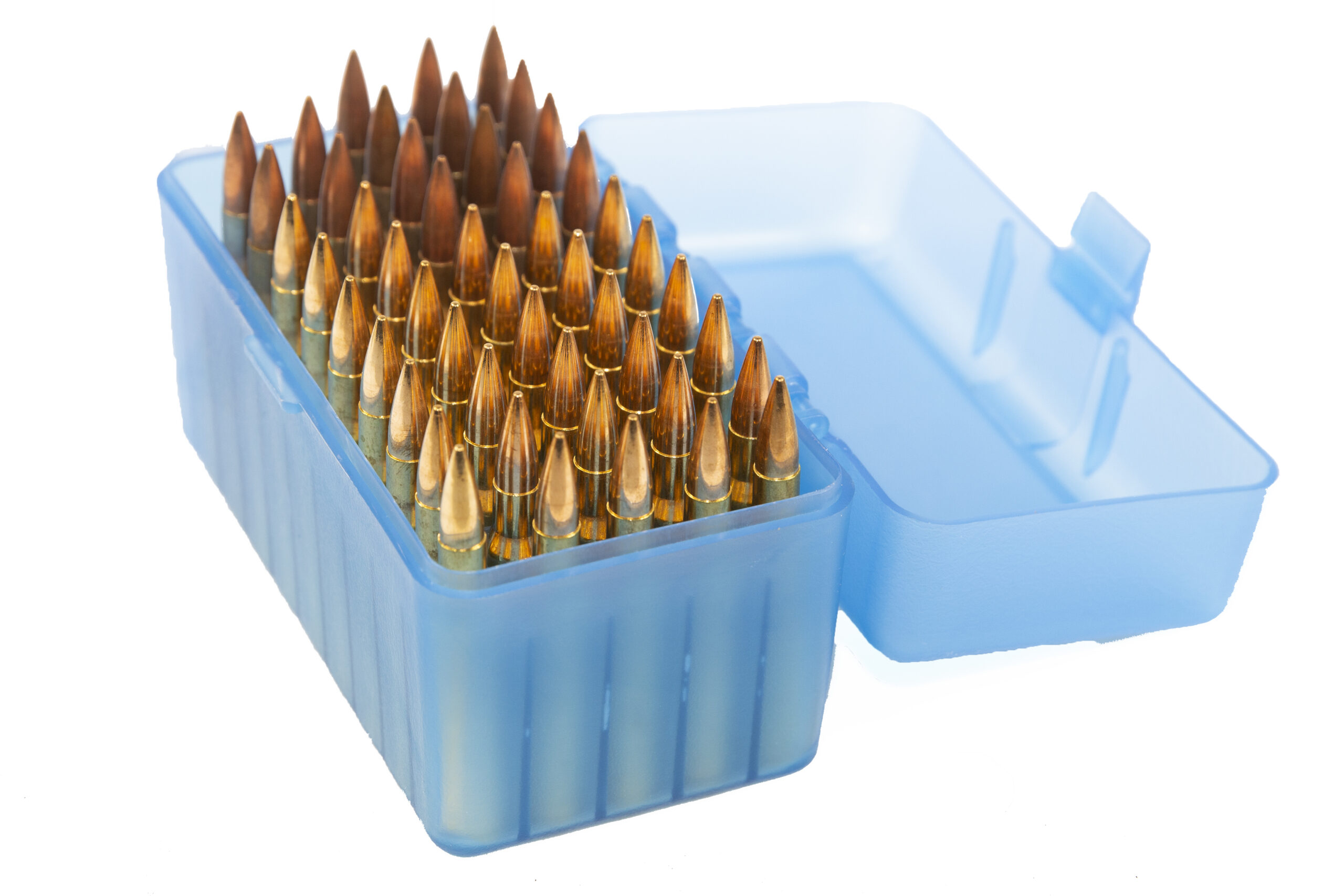 Ammo Box med plads til 50 Patroner. Flip låg, 15,5 x 8 x 8 cm