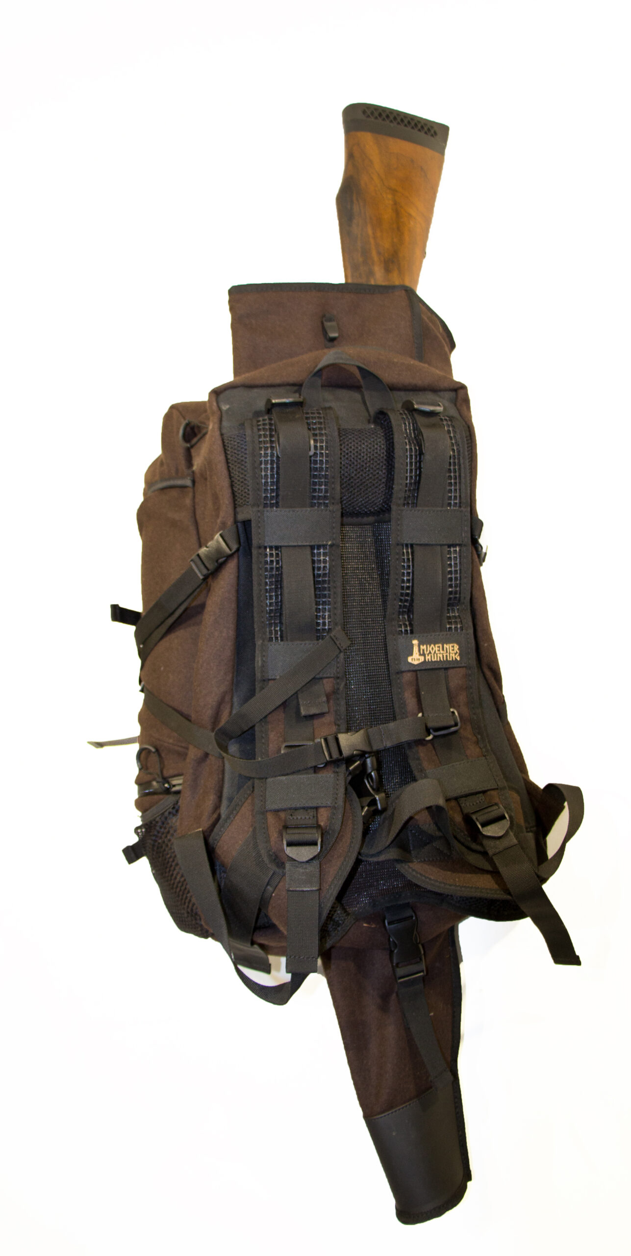 Den ultimative rygsæk til fjeld og højlandsture. Designet til hård jagt. Innovativt design som omfatter; Lækkert støjsvagt materiale, Aftageligt ”fast draw” riffeletui. Super åndbart bæresystem i trampolin materiale. Bred vatteret hoftebælte. Et stort hovedrum med kompression remme. Snelukke i top med overfald og mulighed for adgang i bund. Aftageligt og vendbart frontflap som på den ene side har elastikremme og på den anden side har en net pose som kan anvendes til vådt tøj eller til svampe. To net sidelommer for hurtig adgang selv under gang. Tube-gennemføring til drikkedunk. Lynlåspuller for nem og lydløs betjening selv med handsker. Brystrem. Regn cover i vendbar grøn og hvid. Det bagerste rum til riffeletui, kan ligeledes anvendes som opbevaringsrum.