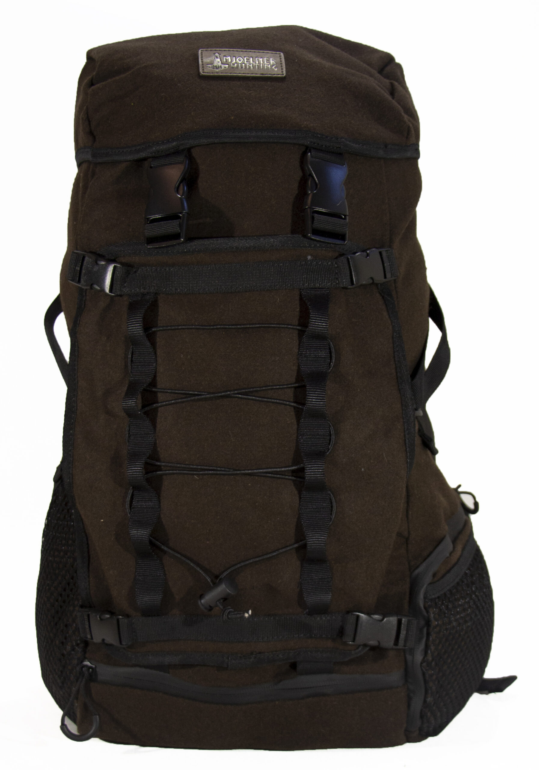 Ultimative rygsæk til fjeld og højlandsture. Designet til hård jagt. Innovativt design som omfatter; Lækkert støjsvagt materiale. Super åndbart bæresystem i trampolin materiale. Bred vatteret hoftebælte. Et stort hovedrum med kompression remme. Snelukke i top med overfald og mulighed for adgang i bund. Aftagelig og vendbar frontflap som på den ene side har elastikremme og på den anden side har en net pose som kan anvendes til vådt tøj eller til svampe. To net sidelommer for hurtig adgang selv under gang. Tube-gennemføring til drikkedunk. Lynlåspuller for nem og lydløs betjening selv med handsker. Brystrem. Regn cover i vendbar grøn og hvid.