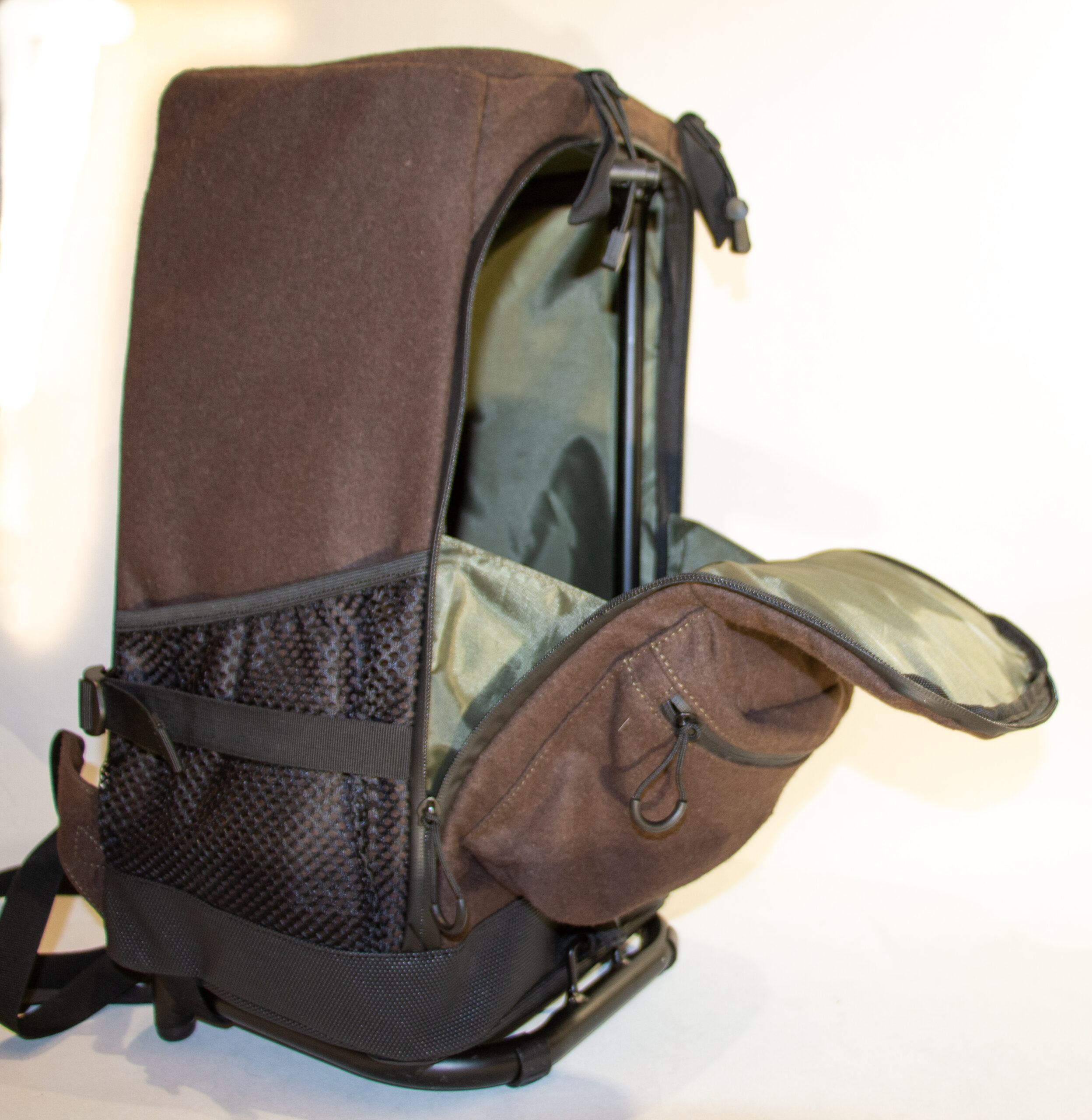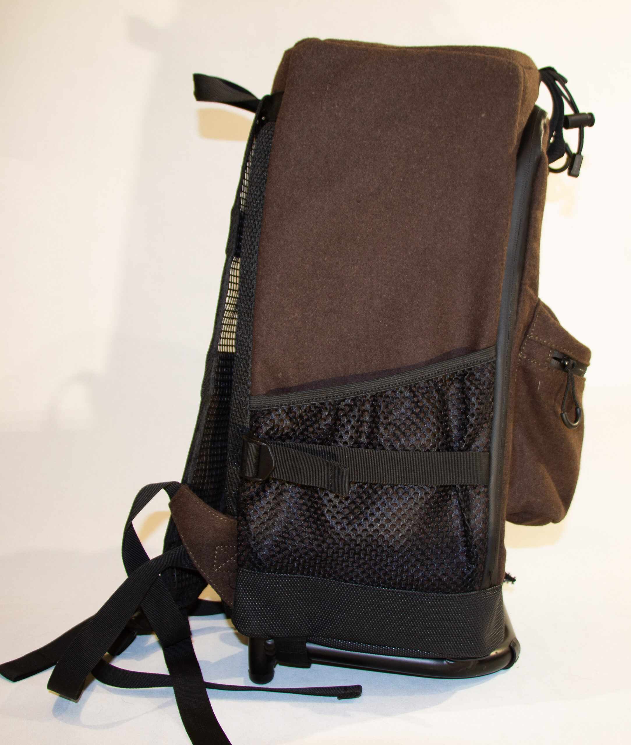 Lækker rygsækstol i lydsvag loden. Super siddekomfort. Brede skulderremme i stærkt ventilationsnet for øget komfort. Et stort hovedrum og en front rum, samt to sidelommer. Stærk stol som tåler sidevægt på 200 kg. Raincover.